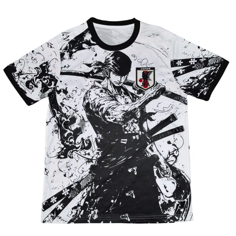 Unite anime culture with Japanese football through the Japan Zoro Black & White Jersey. Inspired by the legendary swordsman, this special edition blends style, passion, and Japanese pride. A must-have for anime fans and collectors who want to showcase their love for both football and manga culture in a unique way.